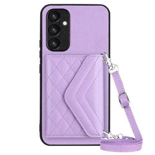 Funda para Teléfono Samsung Galaxy A54 5G con Rfid Bolsa para Tarjetas Textura Rómbica Cordón Largo (Púrpura Claro)