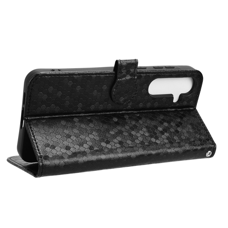 Funda de Cuero para Samsung Galaxy A55 5G con Textura de Punto de Panal (Negro)