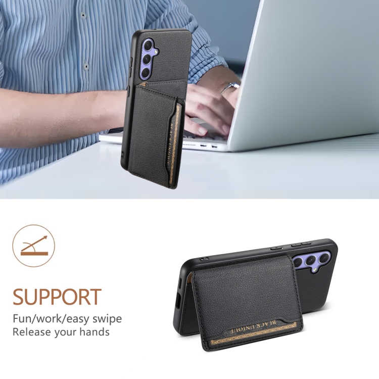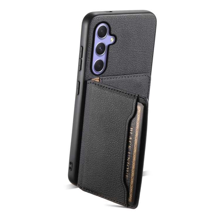 Funda para Teléfono Samsung Galaxy A55 5G Diseño Bolsa para Tarjetas Textura de Becerro (Negro)