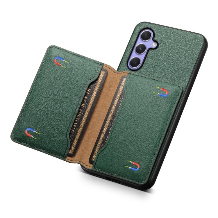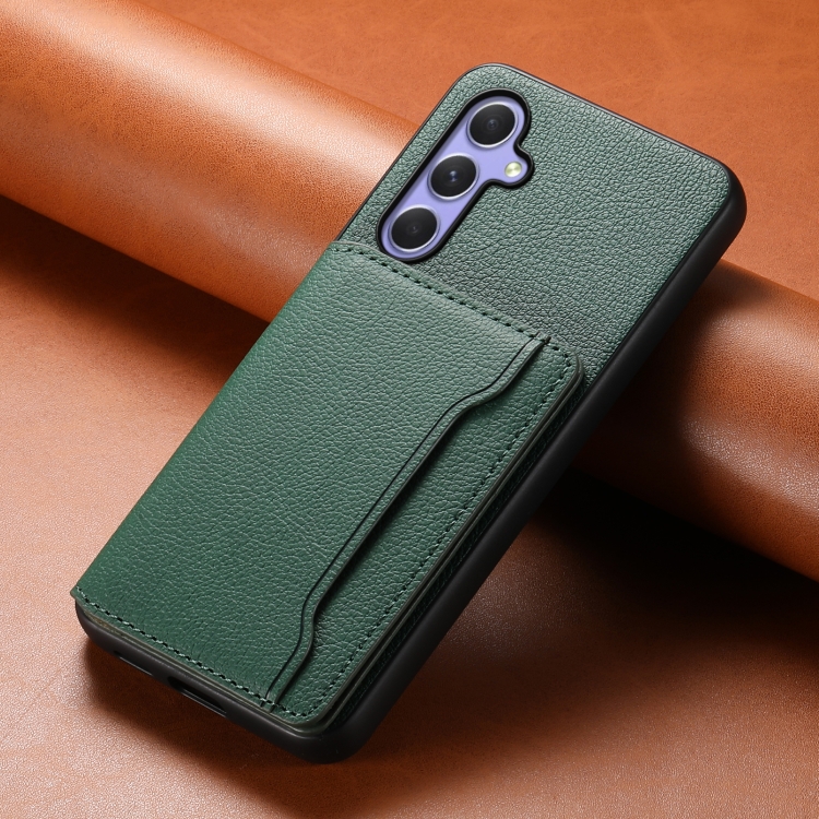 Funda para Teléfono Samsung Galaxy A55 5G Diseño Bolsa para Tarjetas Textura de Becerro (Verde)