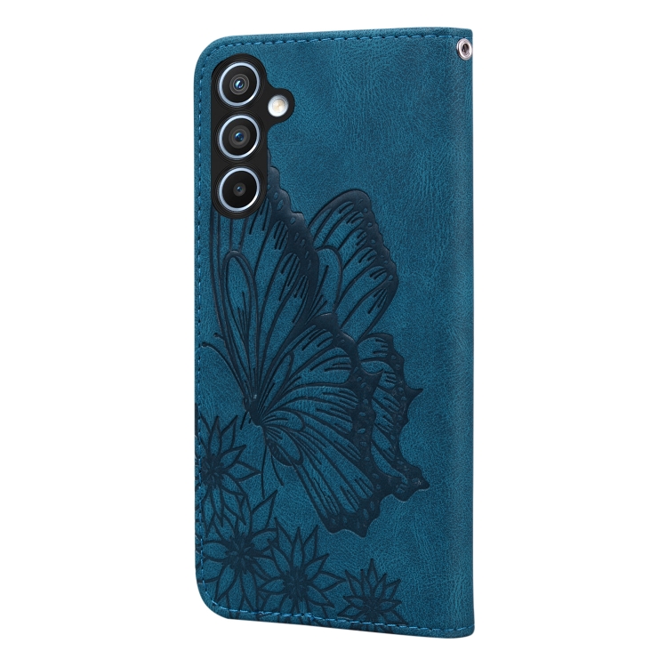Funda para Teléfono Samsung Galaxy A55 5G Cuero Tapa Horizontal Sensación Piel Retro Estampado Mariposas (Azul)