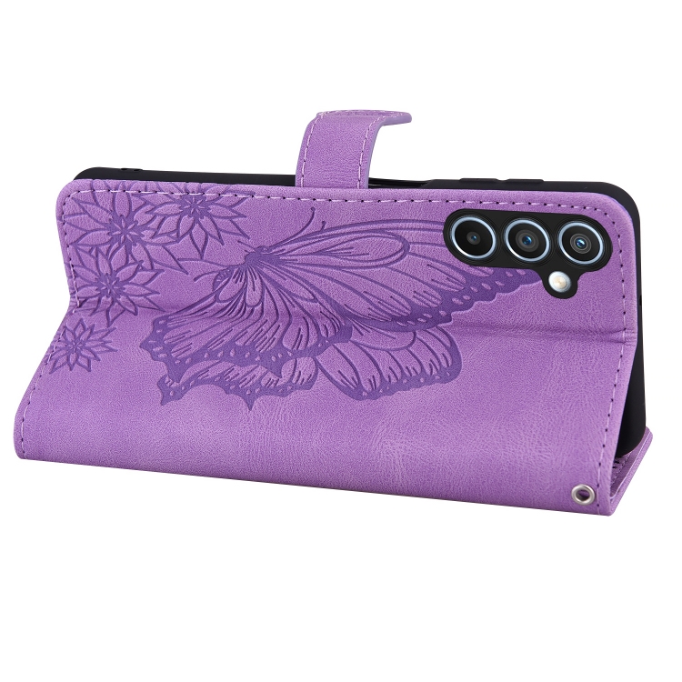 Funda para Teléfono Samsung Galaxy A55 5G Cuero Tapa Horizontal Piel Retro Mariposas (Púrpura)