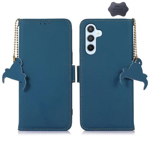 Funda para Teléfono Samsung Galaxy A55 5G Cuero Magnético Rfid Cuero Genuino (Azul)