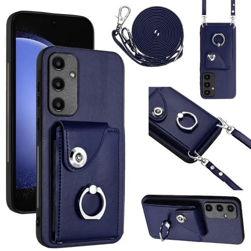Funda para Teléfono Samsung Galaxy A55 con Soporte para Anillo y Bolsa para Tarjeta con Cordón Largo (Azul)