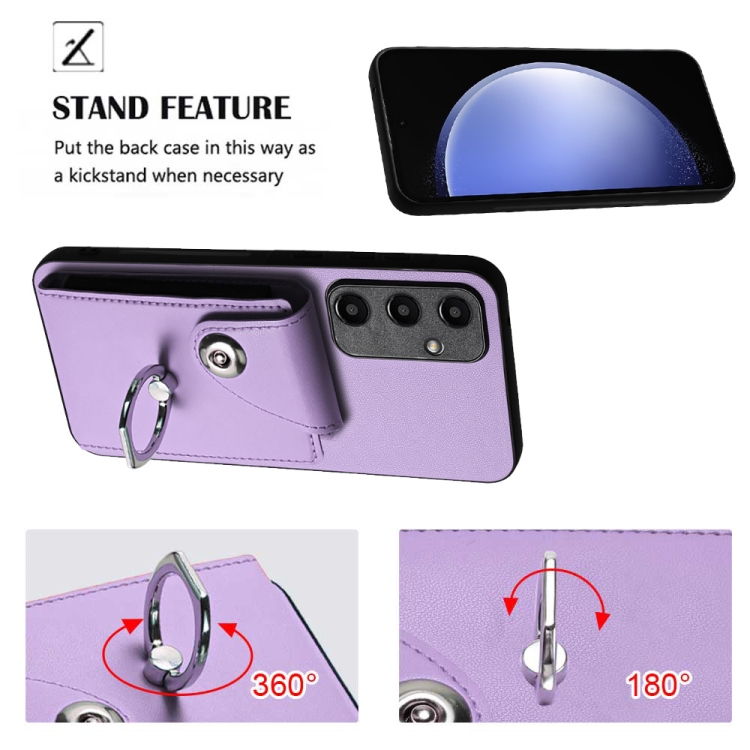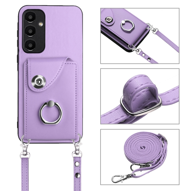 Funda para Teléfono Samsung Galaxy A55 con Soporte para Anillo y Bolsa para Tarjeta con Cordón Largo (Púrpura)