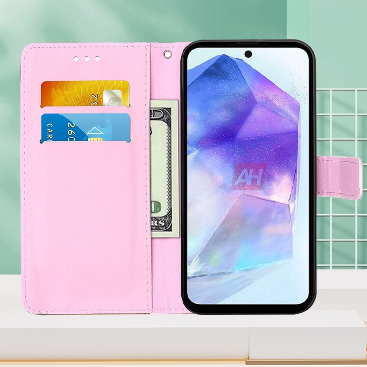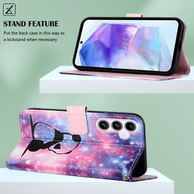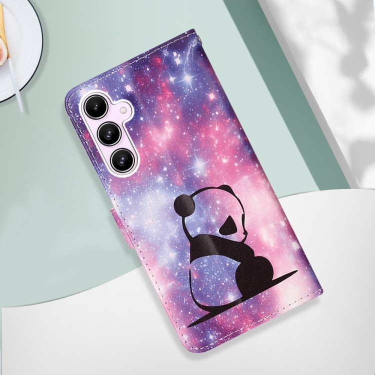 Funda para Teléfono Samsung Galaxy A55 Cuero Tejido Liso Patrón Dibujo Colores (Baby Panda)