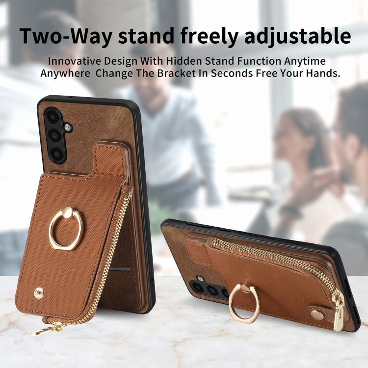 Funda para Teléfono Samsung Galaxy A70 A70S con Anillo Cuero Cruzado Cremallera y Billetera (Marrón)