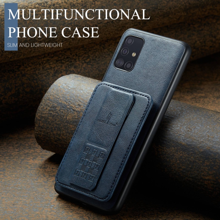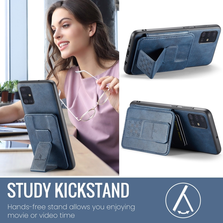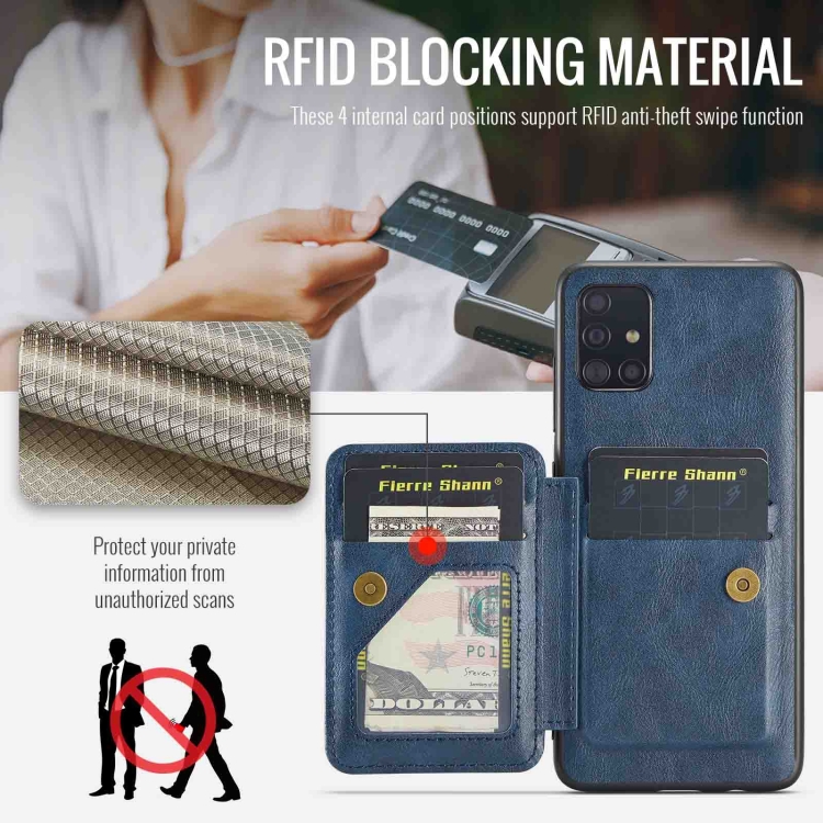 Funda para teléfono Samsung Galaxy A71 4G Fierre Shann Oil Wax con tarjetero de cuero de vaca (Azul)