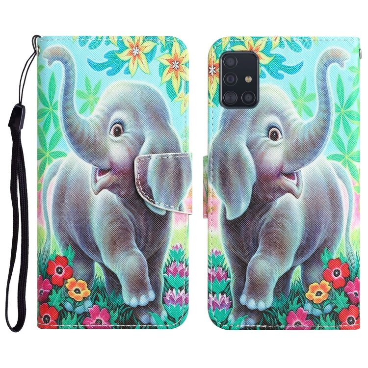 Para Samsung Galaxy A71 Estuche para teléfono de cuero con dibujo coloreado (elefante)