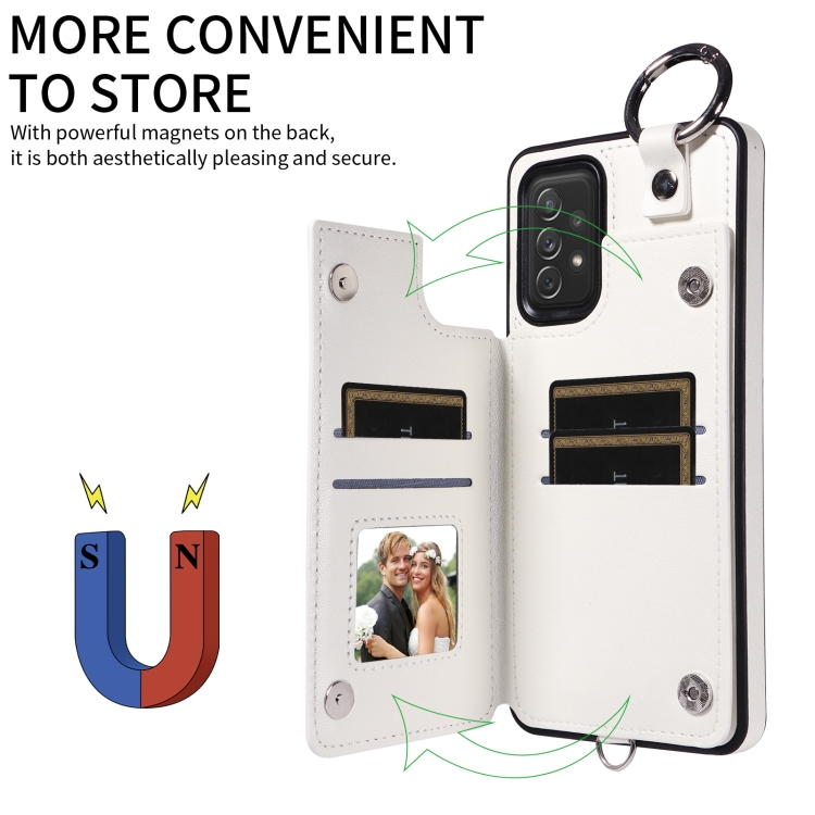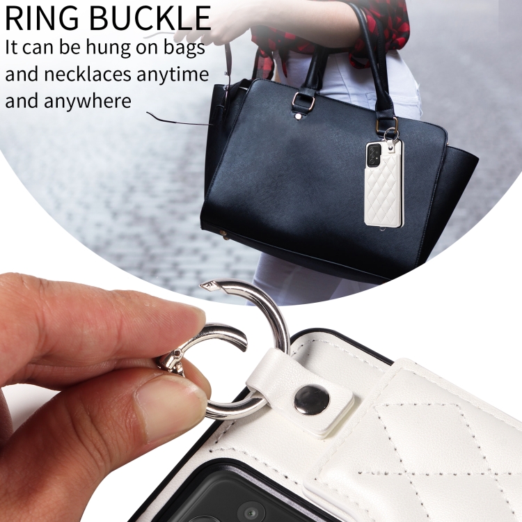 Estuche para Teléfono Samsung Galaxy A72 4G 5G con Bolsa para Tarjetas Textura Rómbica y Cordón Corto (Blanco)
