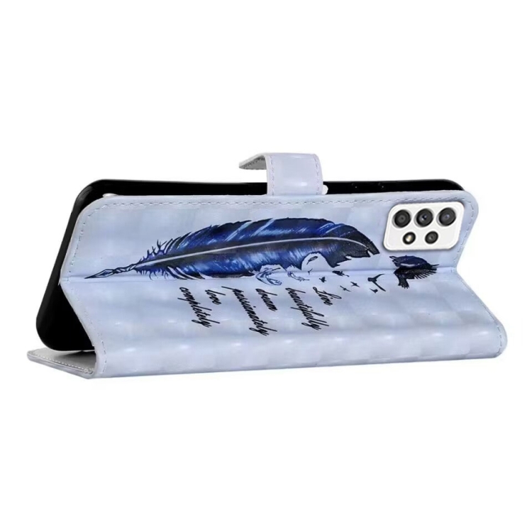 Funda para Teléfono Samsung Galaxy A72 4G 5G Cuero Dibujo 3D Relieve al Óleo (Pluma Azul)