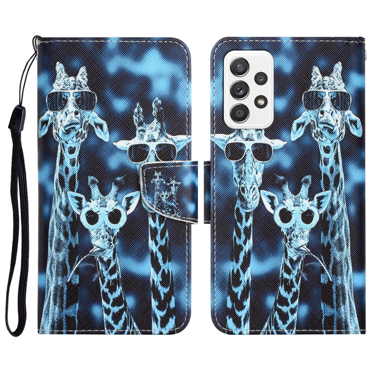 Para Samsung Galaxy A72 5G / 4G Estuche para teléfono de cuero con dibujo coloreado (jirafas)