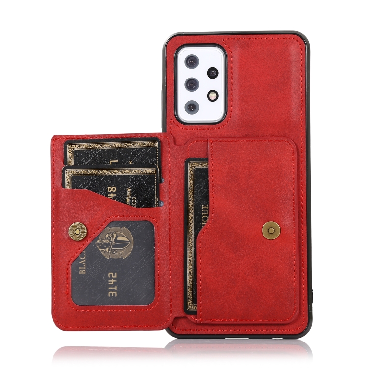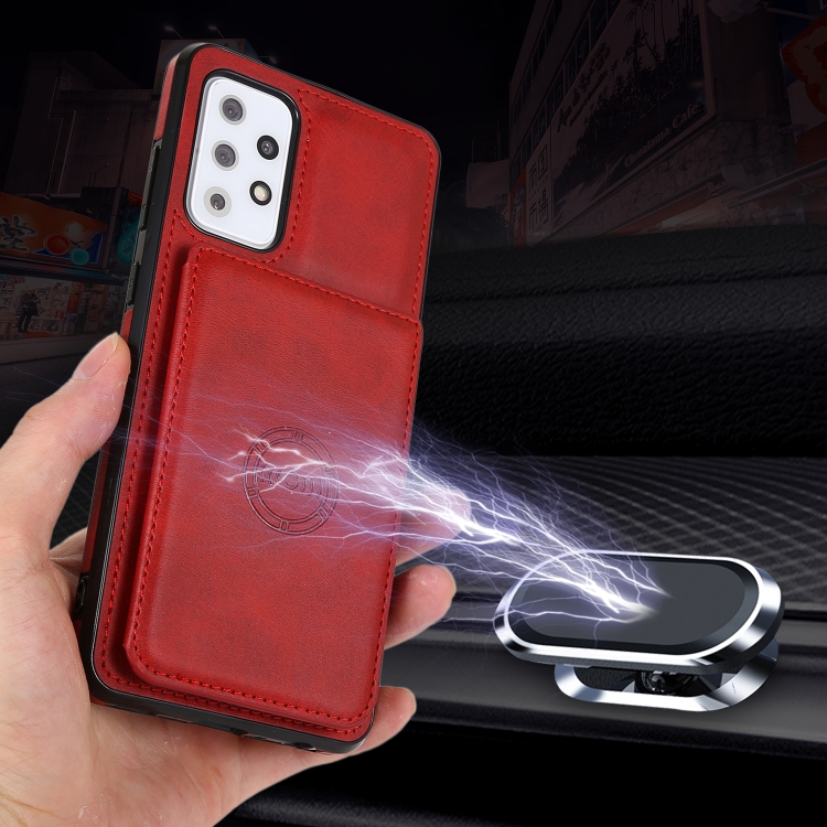 Funda para Samsung Galaxy A72 5G Textura Magnética Tarjeta Bolsa de Pu (Rojo)