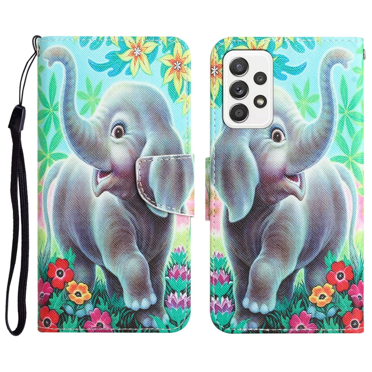 Para Samsung Galaxy A73 5G Estuche para teléfono de cuero con dibujo coloreado (elefante)