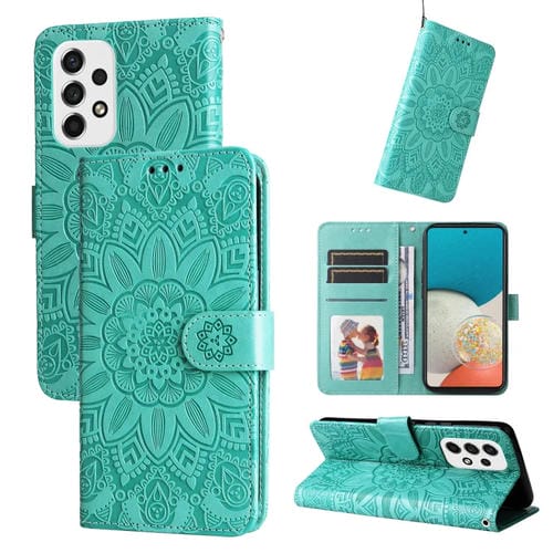Estuche para teléfono Samsung Galaxy A73 5G Cuero con Estampado de Girasol en Relieve (Verde)