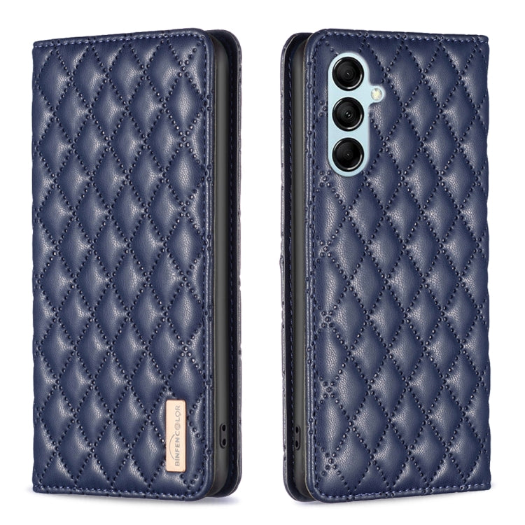 Para Samsung Galaxy M14 5G Diamond Lattice Magnetic Leather Flip Phone Case (Azul)