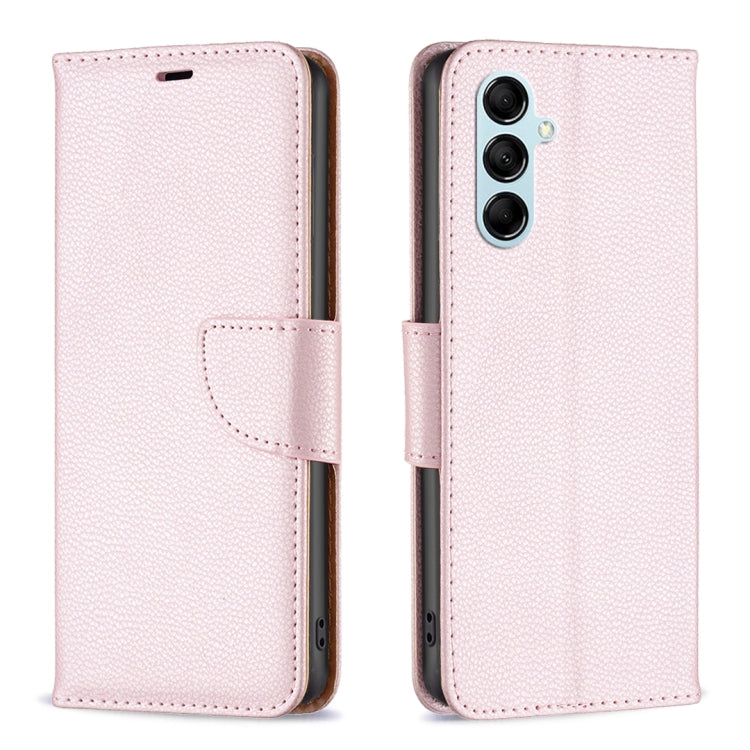 Para Samsung Galaxy M14 5G Litchi Texture Pure Color Funda de cuero para teléfono (Oro rosa)