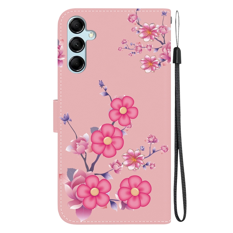 Funda de Cuero Samsung Galaxy M14 con Dibujo Coloreado y Textura de Cristal (Flores de Cerezo)