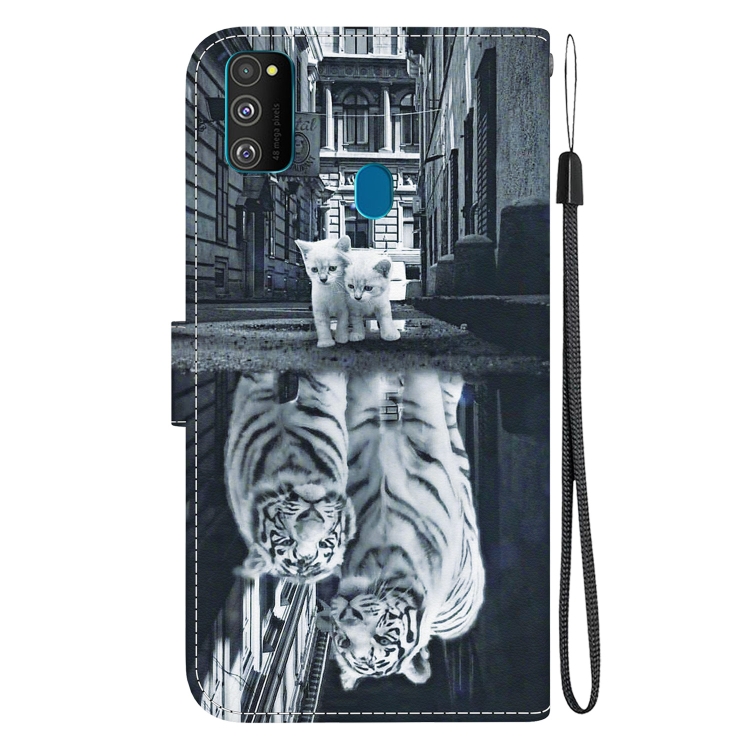 Funda para Teléfono Samsung Galaxy M30S / M21 Cuero Dibujo Coloreado Textura de Cristal (Reflejo de Tigre Gato)