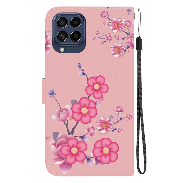 Funda para Teléfono Samsung Galaxy M33 5G Cuero Dibujo Coloreado Textura de Cristal (Flores de Cerezo)