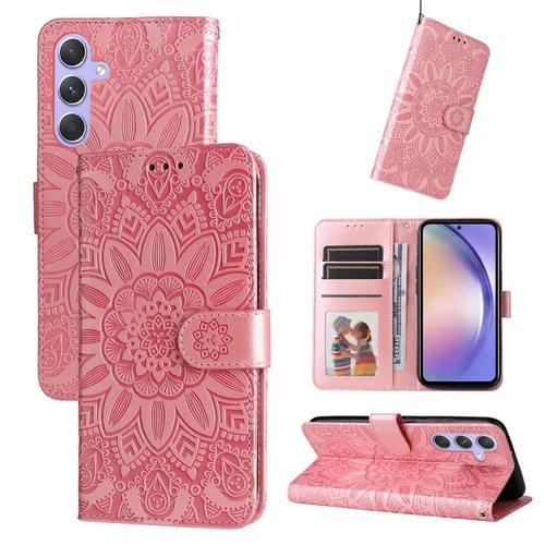 Estuche para Teléfono Samsung Galaxy M54 5G Cuero con Estampado de Girasol En Relieve (Oro Rosa)