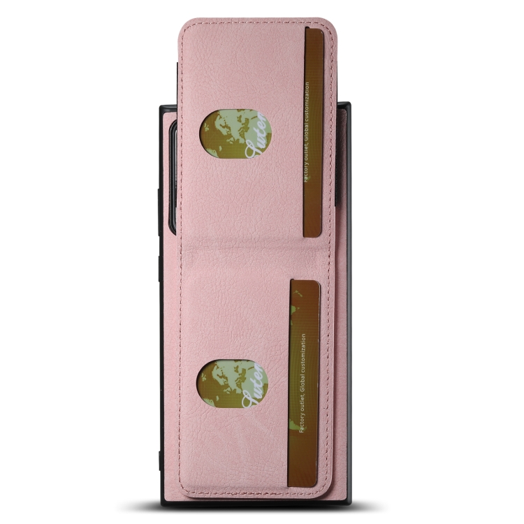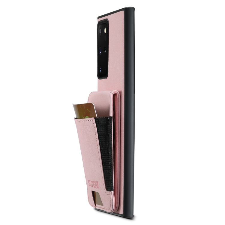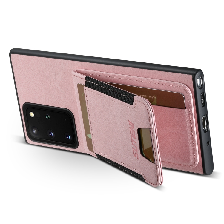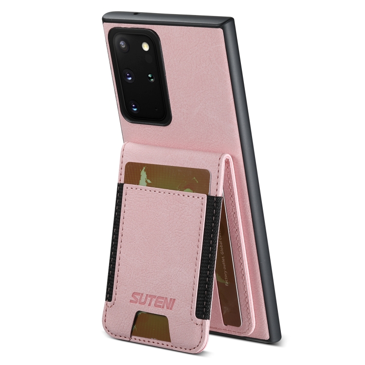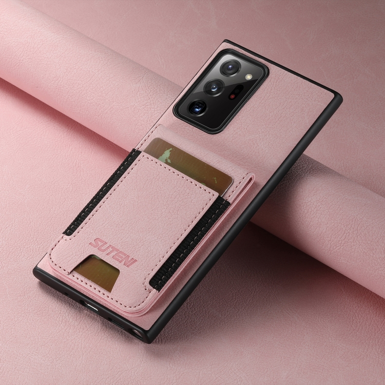 Funda para teléfono Samsung Galaxy Note20 5G Suteni H03 con soporte para tarjeta y cuero Litchi (Rosa)