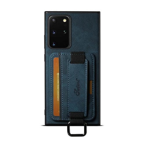 Funda para Samsung Galaxy Note20 5G Suteni H13 con Correa de Cuero Litchi y Billetera (Azul)