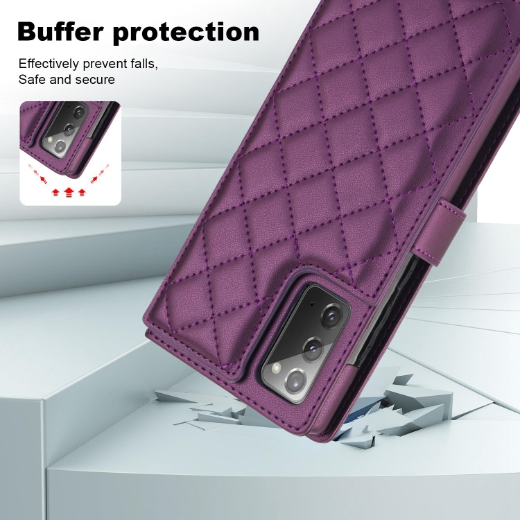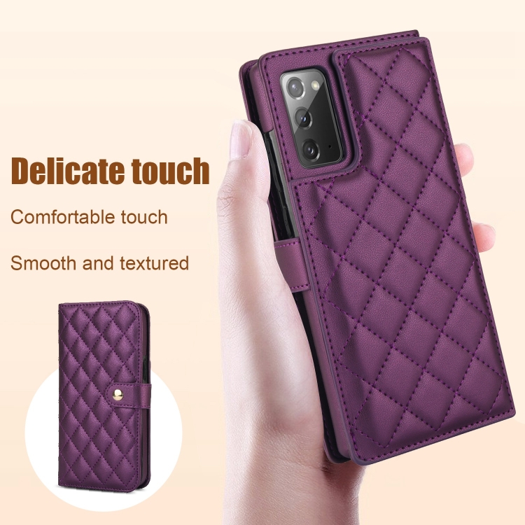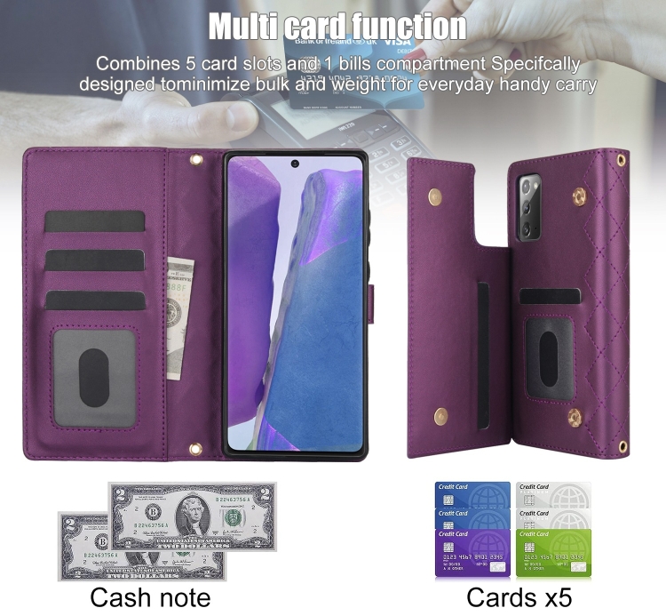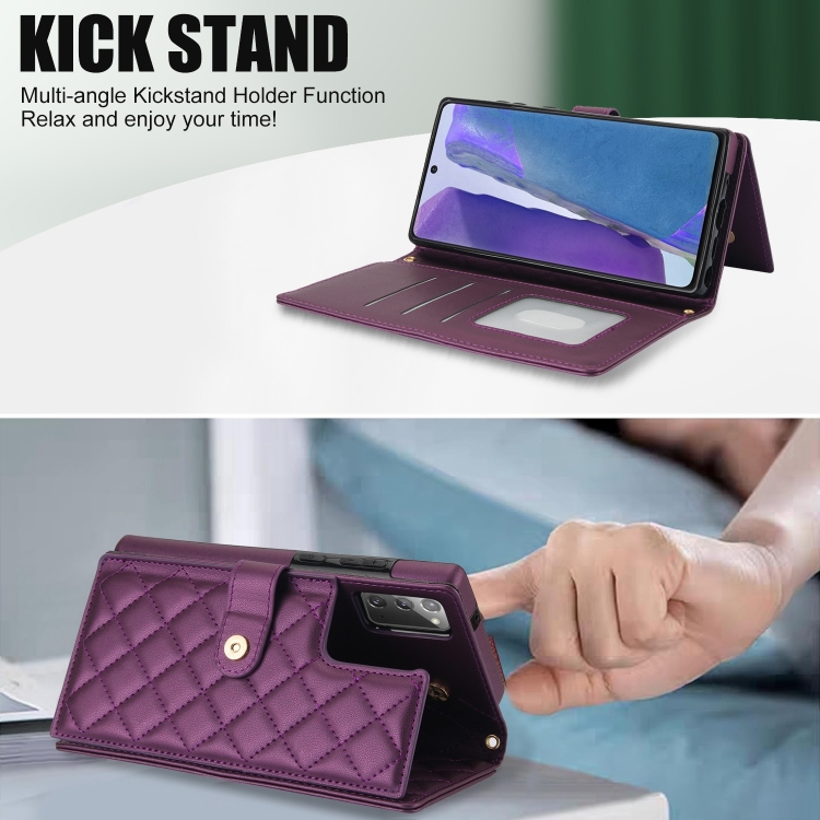 Funda Cruzada de Cuero Samsung Galaxy Note20 Rómbica Multifunción (Púrpura Oscuro)