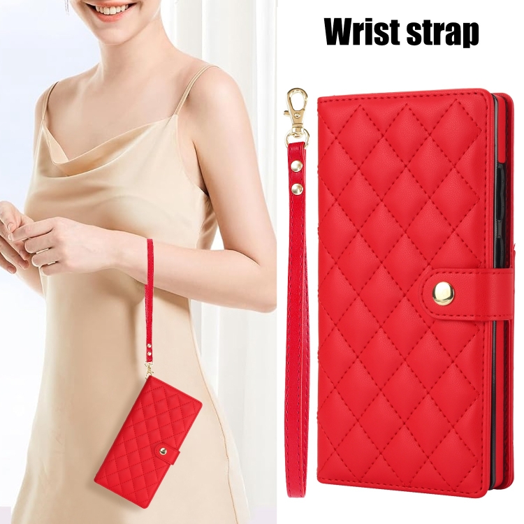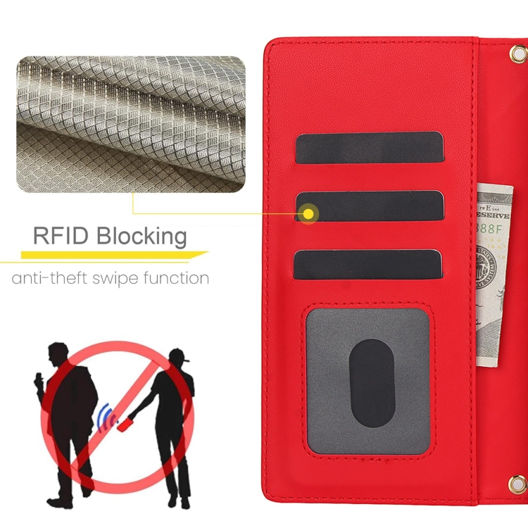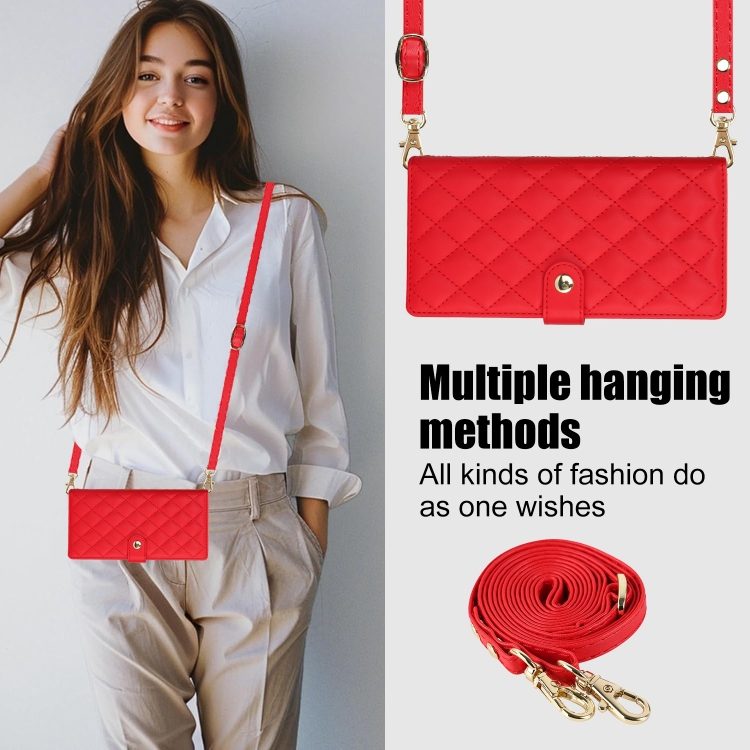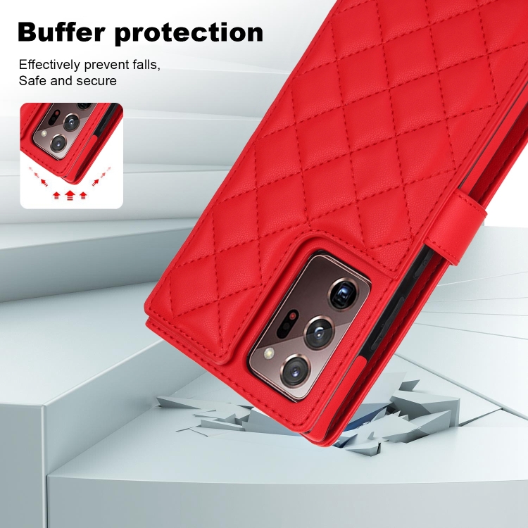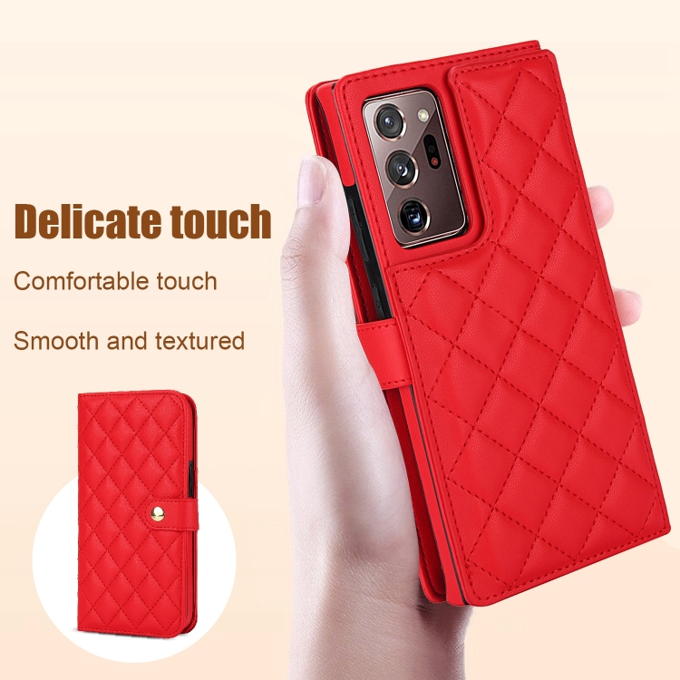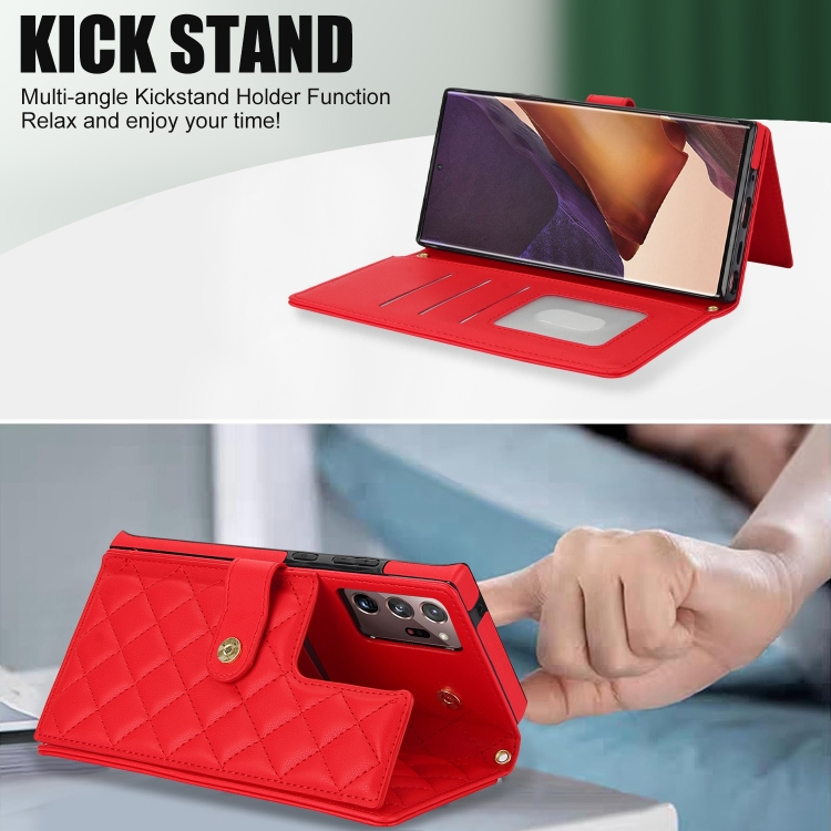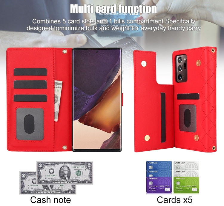 Estuche para Teléfono Samsung Galaxy Note20 Ultra Crossbody de Cuero Rómbico Multifunción (Rojo)