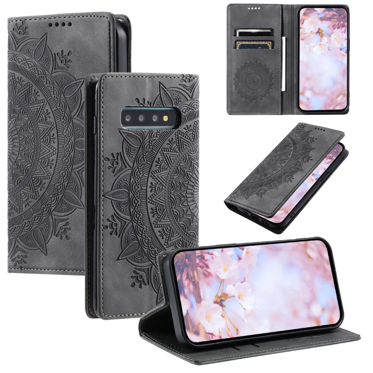 Estuche de Cuero Magnético Totem para Samsung Galaxy S10 En Relieve (Gris)