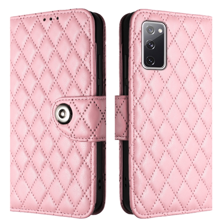 Estuche para Teléfono Samsung Galaxy S20 FE Tapa de Cuero Textura Rómbica Cordón (Rosa)