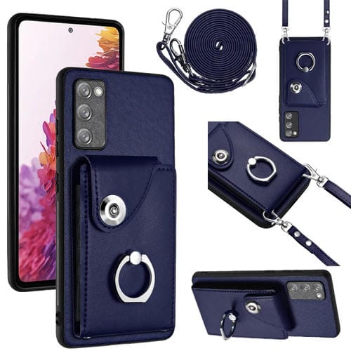 Funda para Teléfono Samsung Galaxy S20 FE con Soporte Anillo y Bolsa para Tarjeta con Cordón Largo (Azul)