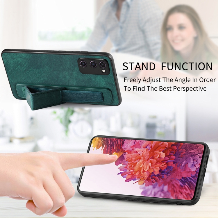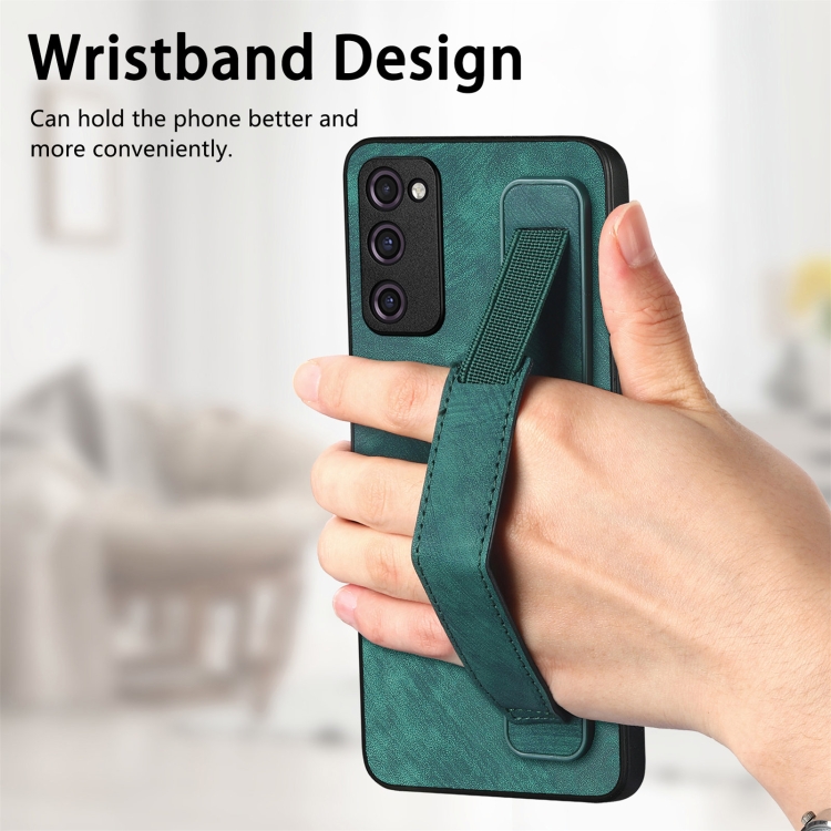 Funda Trasera Muñequera de Cuero para Samsung Galaxy S20 FE (Verde)