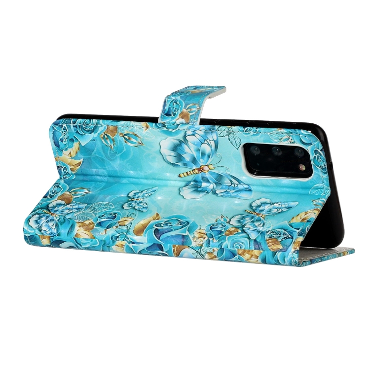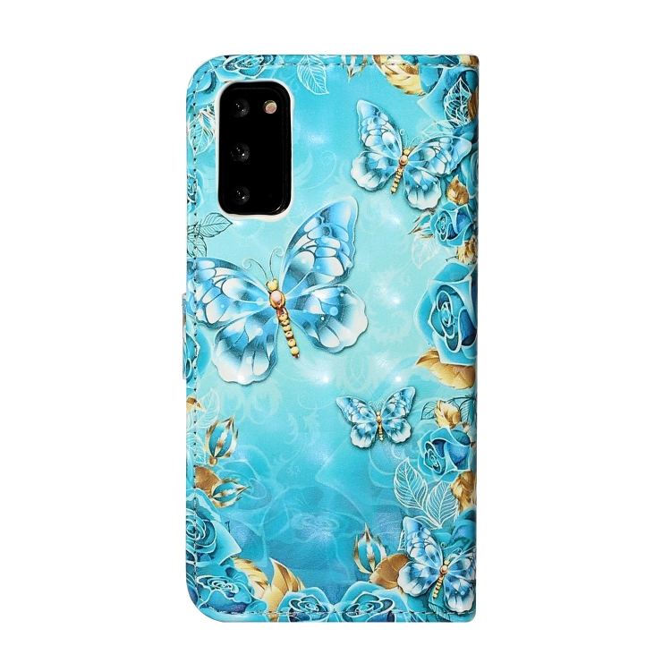 Funda de Cuero para Samsung Galaxy S20 con Dibujo 3D en Relieve al Óleo (Mariposas Azules)