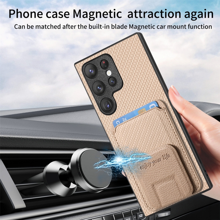 Funda para Teléfono Samsung Galaxy S20 con Soporte Plegable y Bolsa para Tarjetas Fibra de Carbono (Caqui)