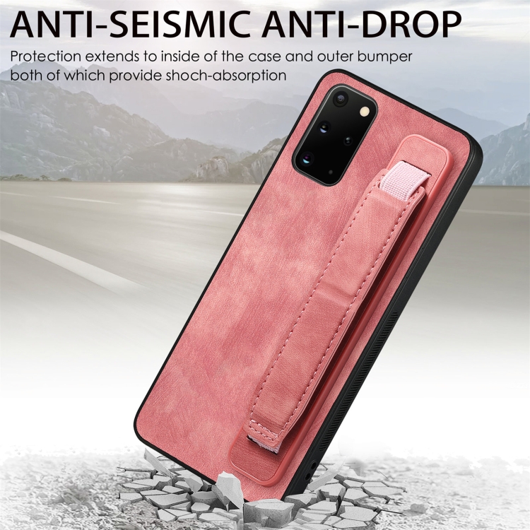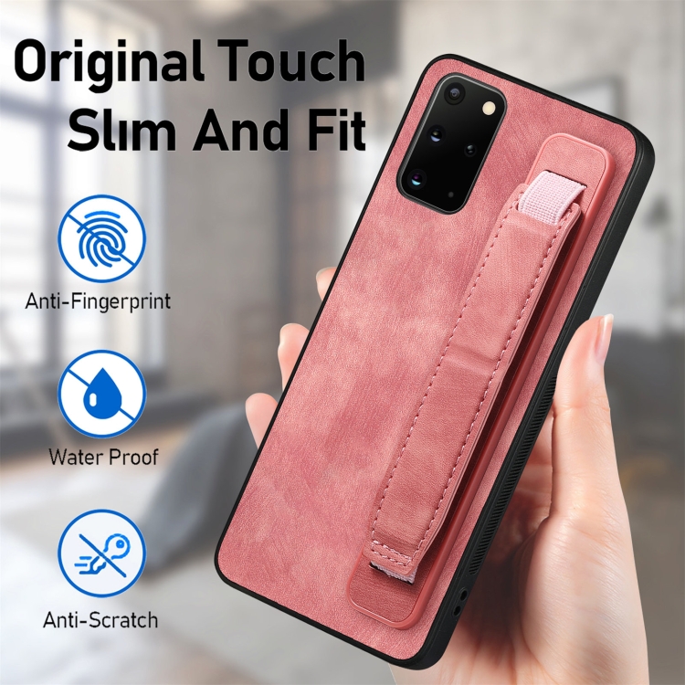 Funda Trasera de Cuero para Samsung Galaxy S20 con Soporte para Pulsera Retro (Rosa)