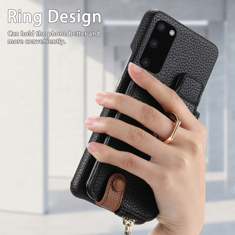Funda para Teléfono Samsung Galaxy S20 Litchi Leather Oil Edge Ring Zipper Wallet Back (Negro)