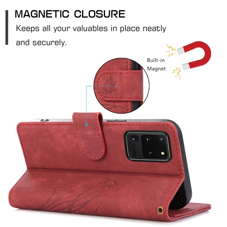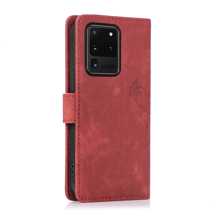 Funda de Cuero Samsung Galaxy S20 Ultra Orchid Butterfly En Relieve (Rojo)