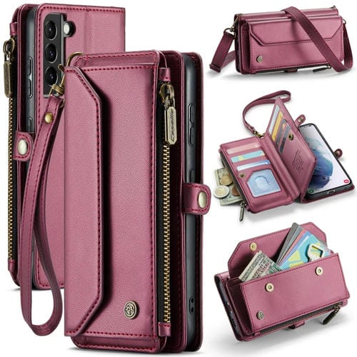 Estuche para Teléfono Caseme C36 para Samsung Galaxy S21 + 5G Cartera con Ranuras para Tarjetas y Cremallera (Rojo Vino)