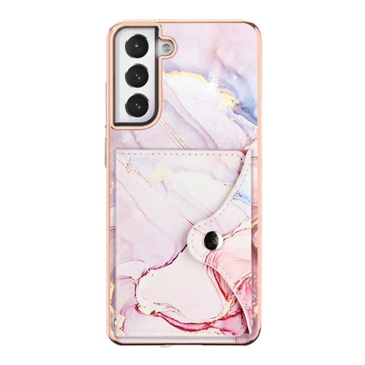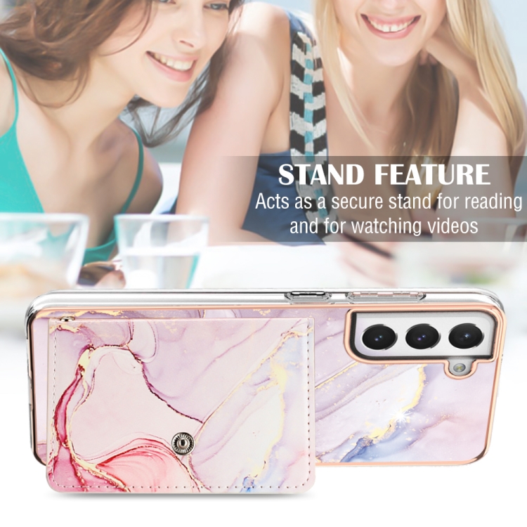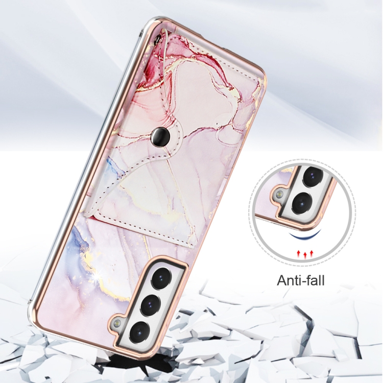 Estuche para teléfono Samsung Galaxy S21 + 5G con ranura para tarjeta y patrón de mármol (Oro Rosa)