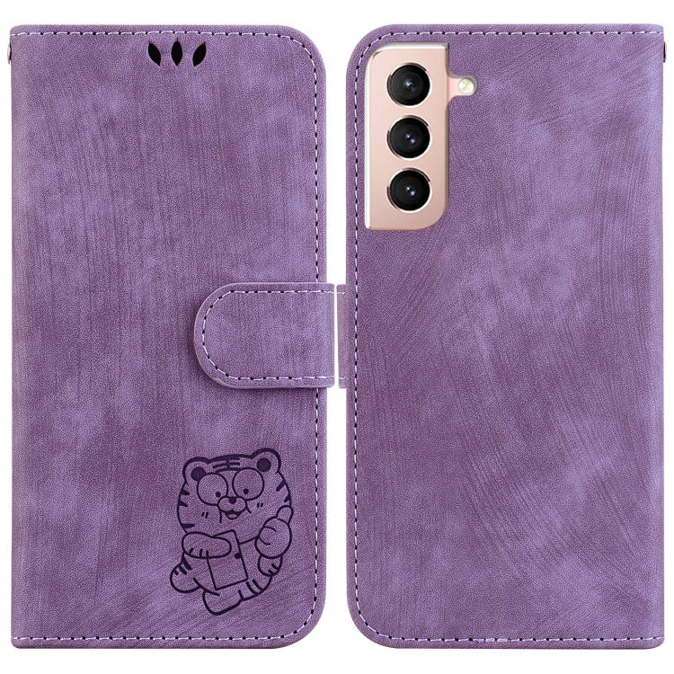 Para Samsung Galaxy S21 5G Funda de cuero con relieve Little Tiger (púrpura)
