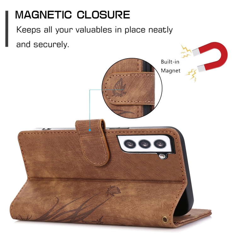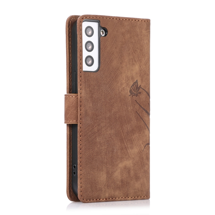 Funda para Teléfono Samsung Galaxy S21 5G Cuero Relieve Mariposa Orquídea (Marrón)