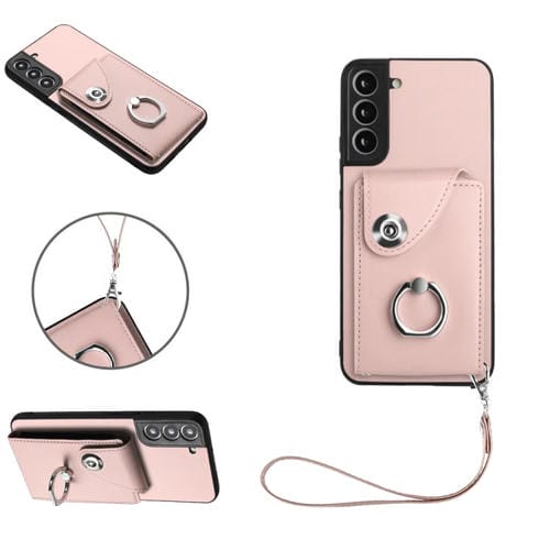Funda para Teléfono Samsung Galaxy S21 FE 5G Bolsa para Tarjeta Soporte para Anillo con Cordón (Rosa)