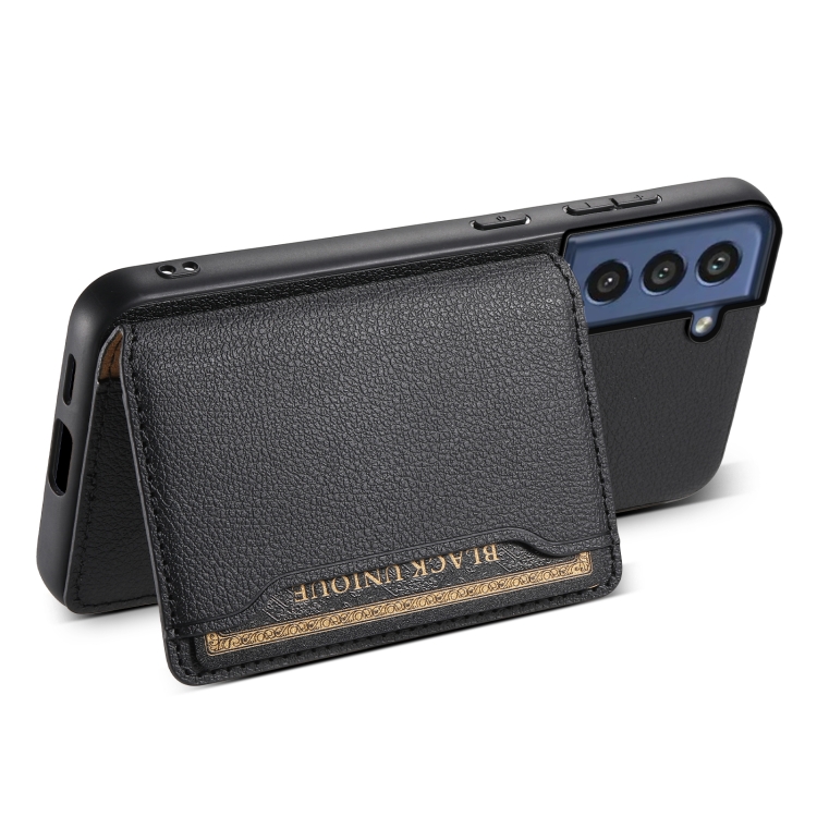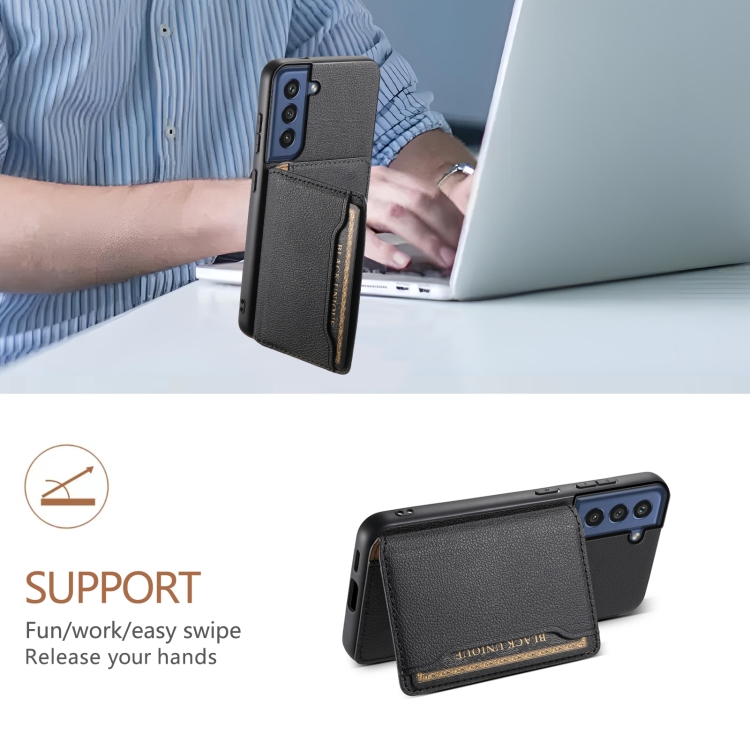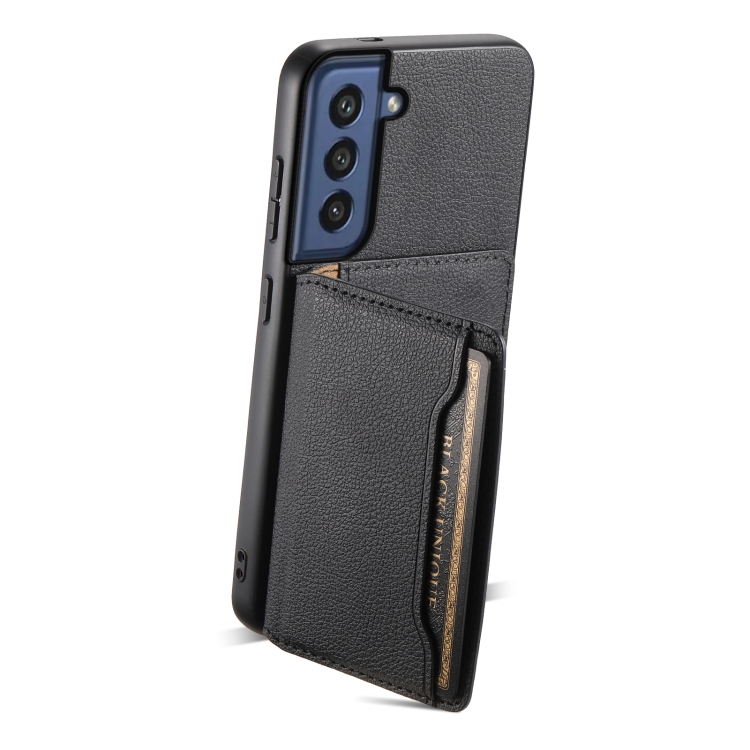 Estuche para Teléfono Samsung Galaxy S21 FE 5G Diseño Bolsa para Tarjetas Textura Pantorrilla (Negro)