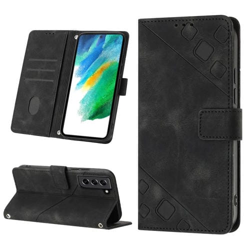 Estuche para Teléfono Samsung Galaxy S21 FE 5G Cuero En Relieve con Tacto de Piel (Negro)