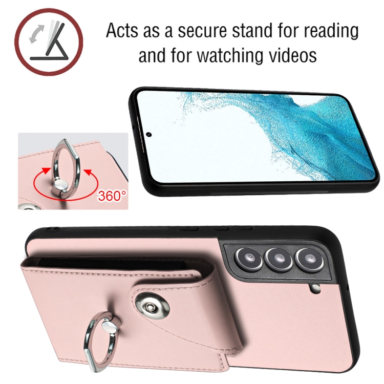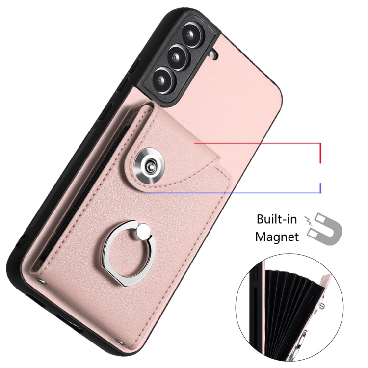 Funda para Teléfono Samsung Galaxy S21 FE 5G con Soporte para Anillo y Bolsa para Tarjeta con Cordón Largo (Rosa)