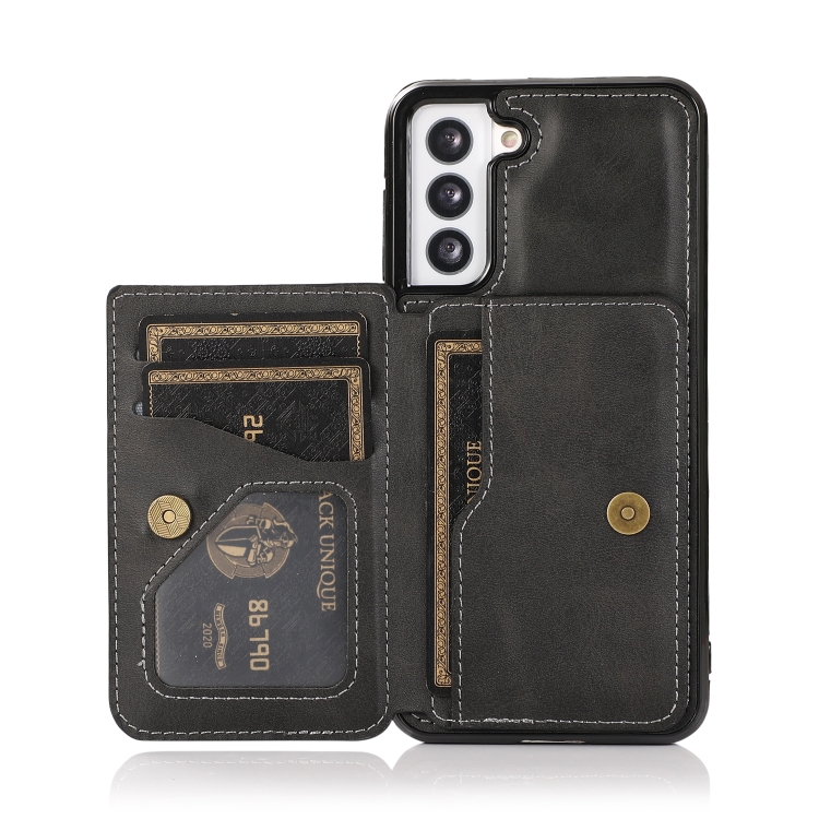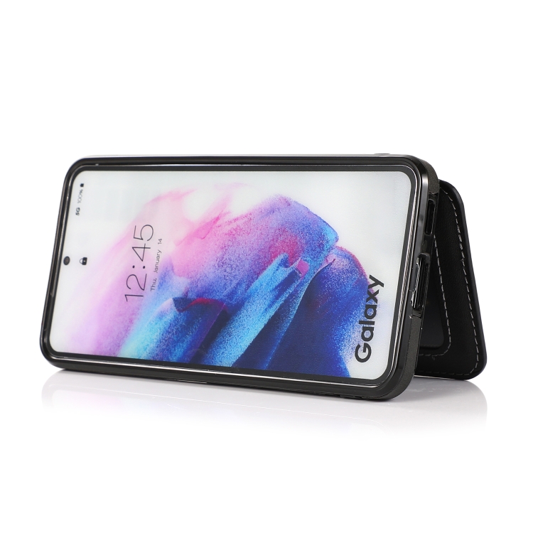 Funda para Samsung Galaxy S21 FE 5G Textura Calfe Tarjeta Magnética Bolsa de la Pus de la Pu (Negro)