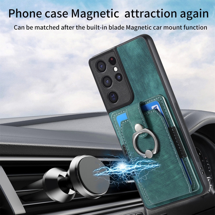 Funda para Teléfono Samsung Galaxy S21 Ultra 5G con Billetera, Tarjeta y Anillo (Marrón)