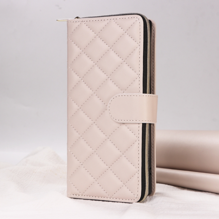 Funda Cruzada de Cuero Samsung Galaxy S22+ 5G con Hebilla y Cremallera Rómbica (Beige)