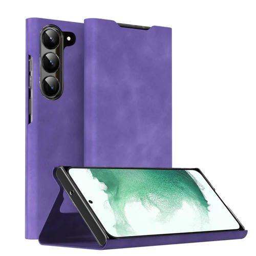Funda Magnética de Cuero para Samsung Galaxy S22 + 5G con Textura de Napa y Soporte (Púrpura)